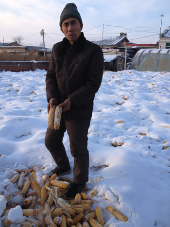 黑龍江省一位農(nóng)民家中待售的玉米。 |