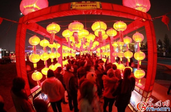 32平方公里的大地上更是一連數(shù)天精彩不斷,輪番上演著賞花燈、猜燈謎,扭秧歌,吃湯圓,賞書(shū)畫(huà),舞金獅……