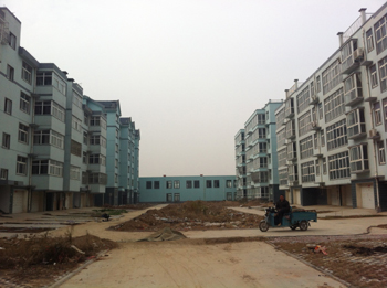 然而,記者在河南新鄉(xiāng)市紅旗區(qū)看到了另外一番景象。關(guān)堤鄉(xiāng)油坊堤村共有2800多人,2009年動工興建名為和旺社區(qū)的新村,至今已完工多時。但記者在現(xiàn)場發(fā)現(xiàn),偌大的新社區(qū)連個院門都沒有,從外面沿著一條水泥路進(jìn)來,約有10多棟5層高的樓房,多數(shù)都空無一人。樓房之間的空地上,有的種著蔬菜,有的是荒草和建筑垃圾,甚至還能看到尚未收獲的莊稼。