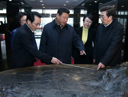 中共中央總書記、國家主席、中央軍委主席習(xí)近平近日在北京市考察。這是習(xí)近平在市規(guī)劃展覽館了解北京地理環(huán)境。