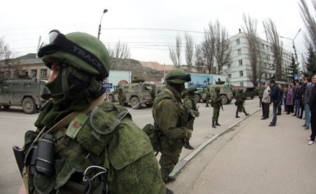 3月1日,在烏克蘭克里米亞自治共和國塞瓦斯托波爾,不明身份的武裝人員包圍一個烏克蘭邊防哨所。