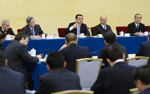 在經(jīng)濟(jì)、農(nóng)業(yè)界委員聯(lián)組會(huì)上,委員們圍繞經(jīng)濟(jì)發(fā)展、深化改革、上海自貿(mào)試驗(yàn)區(qū)、農(nóng)業(yè)現(xiàn)代化等踴躍發(fā)言。李克強(qiáng)與大家深入探討。