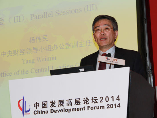 “中國(guó)發(fā)展高層論壇2014”于3月22日-24日在釣魚(yú)臺(tái)舉行。在“包容而可持續(xù)的新型城鎮(zhèn)化”分會(huì)場(chǎng)上,中央財(cái)經(jīng)領(lǐng)導(dǎo)小組辦公室副主任楊偉民發(fā)表了自己的觀點(diǎn)。