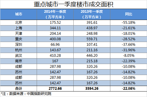 據(jù)大智慧通訊社統(tǒng)計(jì),今年一季度,包括北京、上海在內(nèi)的12個(gè)重點(diǎn)城市樓市成交面積合計(jì)為2772.66萬(wàn)平方米,而在去年一季度,這一數(shù)據(jù)為3594.26萬(wàn)平方米,同比減少了821.60萬(wàn)平方米,降幅達(dá)到22.86%。