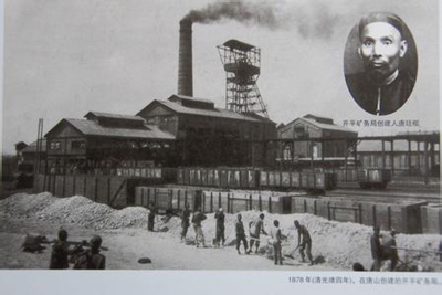 1881年建成的開平礦務(wù)局。右上小圖為開平礦務(wù)局創(chuàng)建人唐廷樞