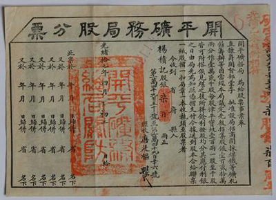 開平礦務(wù)局發(fā)行的股票