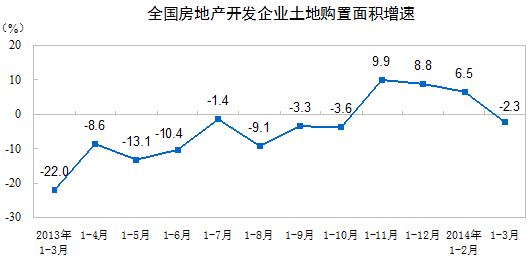 1-3月份,房地產(chǎn)開發(fā)企業(yè)土地購(gòu)置面積5990萬(wàn)平方米,同比下降2.3%,1-2月份為增長(zhǎng)6.5%;土地成交價(jià)款1556億元,增長(zhǎng)11.4%,增速提高2.5個(gè)百分點(diǎn)。
