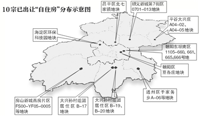 北京已經(jīng)有9個自住房項目啟動申請,可提供自住房約15000套。北京在2014年全年供應(yīng)的自住房量將突破4萬套。圖為10宗已出讓“自住房”分布示意圖。