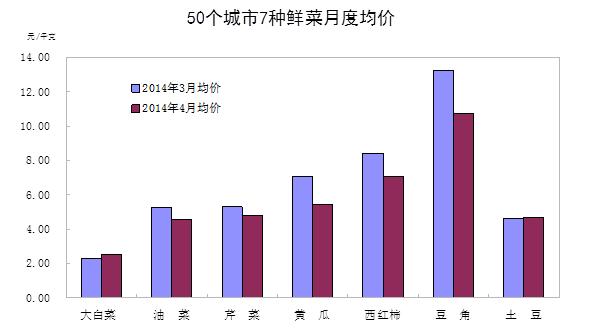 從發(fā)布的環(huán)比數(shù)據(jù)看,4月份鮮菜和豬肉價格下降比較突出,兩者合計影響CPI下降0.51個百分點(diǎn),超過了CPI總降幅,是環(huán)比下降的主要原因。從歷史數(shù)據(jù)看,鮮菜價格為近三年同期最低水平。國家統(tǒng)計局此前發(fā)布的50個城市主要食品價格監(jiān)測數(shù)據(jù)也顯示,今年4月份黃瓜、豆角、西紅柿和油菜每千克均價分別為5.42元、10.74元、7.07元和4.53元,比3月份均價分別下降了23.2%、18.7%、16.0%和14.1%,價格下降較多。
