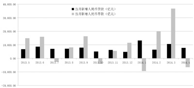一般而言,M2增速與存款增速應(yīng)該保持一致,不過,4月M2增速與存款增速出現(xiàn)了一定程度背離。數(shù)據(jù)顯示,4月當月人民幣存款減少6546億元,同比多減5545億元。4月末銀行存款余額同比增速為11.1%,較3月末下降了0.3個百分點,低于去年年末2.7個百分點。趙慶明表示,人民幣存款減少主要來自于住戶存款,可能與理財產(chǎn)品和“寶寶”們分流有關(guān)。另外,住戶存款減少也可能和消費增加或收入減少有關(guān)。