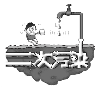 近年來,隨著水污染、發(fā)黃、有異味、毒器材等自來水公共事件的發(fā)生,自來水安全成為人們切身的關(guān)注。《經(jīng)濟參考報》記者調(diào)研發(fā)現(xiàn),除了水源地水質(zhì)下降、自來水廠處理工藝落后外,一些用水單位二次供水設(shè)施存在設(shè)備老化、不能定期清洗的現(xiàn)象,水質(zhì)合格的自來水在經(jīng)過這一環(huán)節(jié)后,被污染的幾率大大增加。