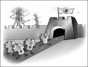 而在輸配電、上游等關(guān)鍵環(huán)節(jié)仍然控制在國(guó)網(wǎng)、中石油、中石化等大企業(yè)手里的大前提下,民資進(jìn)入始終是要仰人鼻息,民資民企無論以多大比例與國(guó)資國(guó)企“混合”,以何種方式“混合”,通常都不可能擁有控股地位,也不具有經(jīng)營(yíng)決策權(quán)。