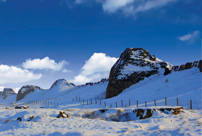 從寧夏回族自治區(qū)銀古一級(jí)公路往東行駛8公里,您便可以不為“不到長(zhǎng)城非好漢”而感到遺憾了,因?yàn)橄笳髦腥A民族勤勞、智慧的古長(zhǎng)城就在你的腳下。位于鄂托克前旗上海廟鎮(zhèn)西部的明代長(zhǎng)城遺址,西起黃河?xùn)|岸向東綿延數(shù)百公里,在鄂托克前旗境內(nèi)長(zhǎng)達(dá)53.3公里。它雖經(jīng)歷了數(shù)百年的風(fēng)風(fēng)雨雨,但整體依舊完好,由黃土夯筑,夯層為8至12厘米,墻體和墩臺(tái)(敵臺(tái))構(gòu)成主體,墩臺(tái)排列整齊,每墩相距150米。歷經(jīng)滄桑的墩臺(tái)現(xiàn)在仍然高達(dá)12米,墻體高6.5米。流經(jīng)寧夏靈武縣的水洞溝河,從長(zhǎng)城的豁口處穿過,此豁口為這段長(zhǎng)城的防御重地,筑有關(guān)城和其他重要防御設(shè)施。明長(zhǎng)城在該旗境內(nèi)共有7處烽火臺(tái)遺址。