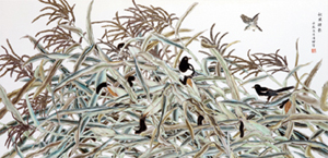 | 秋風掠影,粉彩作品,124cm×61cm,2012年 |