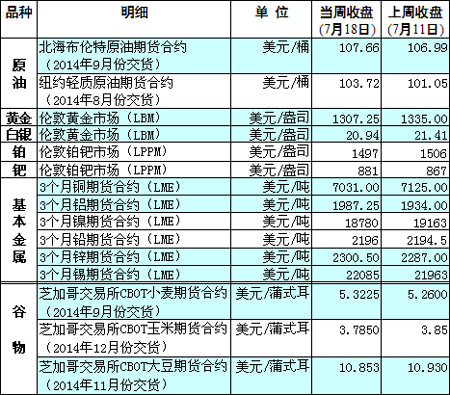 國際大宗商品期貨價格明細表[2014-7-21]