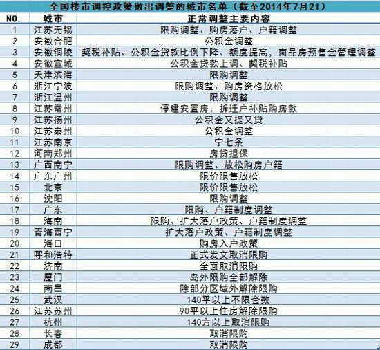 以下是今年以來(lái)對(duì)樓市調(diào)控政策作出調(diào)整的城市名單: