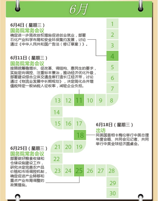 您一周哪天最忙?中國國務(wù)院總理李克強(qiáng)的回答很可能是——星期三。在今年前7個(gè)月的31個(gè)星期三里,除去元旦、春節(jié)兩次休息、8次出席重要活動或考察出訪、一次未見公開報(bào)道,李克強(qiáng)都在主持召開國務(wù)院常務(wù)會議。星期三,成為觀察中國經(jīng)濟(jì)轉(zhuǎn)入中高速增長新常態(tài)下的窗口。