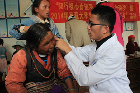 西藏藏醫(yī)學(xué)院團(tuán)委攜手對口支援院校北京中醫(yī)藥大學(xué)“三下鄉(xiāng)”團(tuán)隊(duì)近日來到拉薩市曲水縣敬老院開展義診活動,為老人們把脈問診,對于診斷出來的常見疾病采用針灸火療,按摩拔罐等方法進(jìn)行一些基本治療,藏醫(yī)學(xué)院還向老人們捐贈了一些基本藏藥。