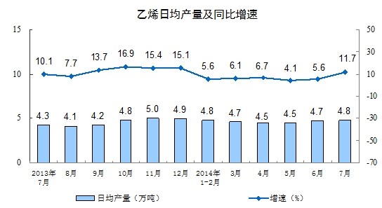 分產(chǎn)品看,7月份,多種產(chǎn)品同比增長。其中,鋼材9476萬噸,增長3.7%;水泥22297萬噸,增長3.5%;十種有色金屬363萬噸,增長7.8%;乙烯150萬噸,增長11.7%;汽車185.8萬輛,增長10.5%;轎車102.1萬輛,增長6.8%;發(fā)電量5048億千瓦時(shí),增長3.3%;原油加工量4108萬噸,增長2.0%。