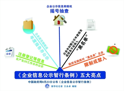 《企業(yè)信息公示暫行條例》,自2014年10月1日起施行。這意味著我國(guó)將從主要依靠行政審批管企業(yè),轉(zhuǎn)向更多依靠建立透明誠(chéng)信的市場(chǎng)秩序規(guī)范企業(yè)。