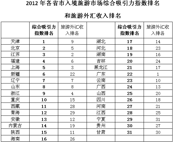 根據(jù)對“入境旅游市場吸引力指數(shù)”的研究,國內(nèi)最具吸引力的省市(省級(jí)行政區(qū)域)是天津、北京和江蘇;最具吸引力的三個(gè)城市是福州、泉州和南京,其中,福州的指數(shù)值為244,是全國中間水平的2.44倍,泉州和南京分別為全國中間水平的1.78倍和1.57倍。