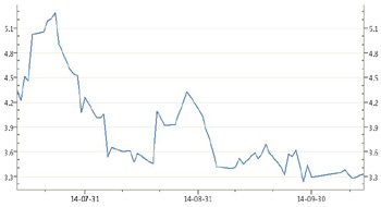 | 銀行間14天期回購(gòu)加權(quán)利率走勢(shì)圖 |