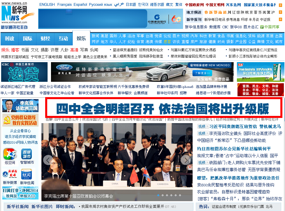 歷史的指針走向又一個重要時刻——2014年10月20日,中國共產(chǎn)黨十八屆四中全會召開,將首次以全會的形式專題研究部署全面推進依法治國。