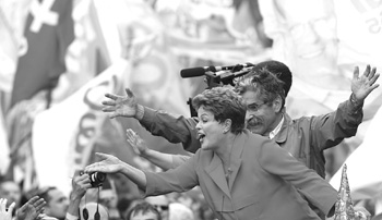 10月26日,巴西總統(tǒng)大選將迎來第二輪投票。由于第一輪投票結(jié)束之后,排名第三、無緣進(jìn)入第二輪投票的社會黨候選人瑪麗娜·席爾瓦宣布與排名第二的社會民主黨候選人阿埃西奧·內(nèi)韋斯聯(lián)手,巴西大選瞬間進(jìn)入“斗地主”模式,現(xiàn)任總統(tǒng)、勞工黨候選人迪爾瑪·羅塞夫?qū)嶋H上面臨著兩個重量級對手的強有力挑戰(zhàn)。