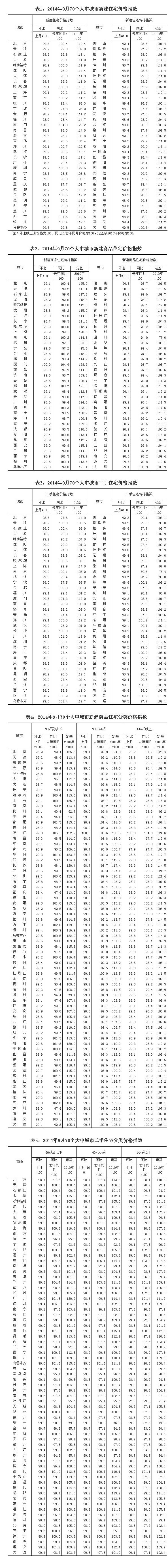 2014年9月份70個(gè)大中城市住宅銷售價(jià)格變動(dòng)情況