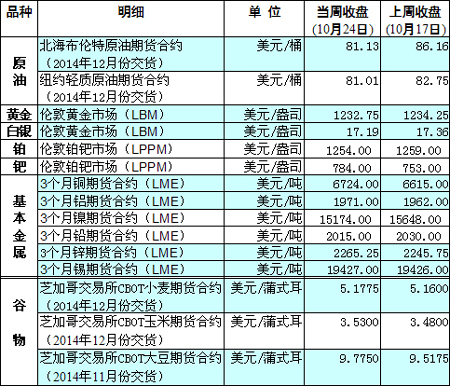 國(guó)際大宗商品期貨價(jià)格明細(xì)表[2014-10-27]