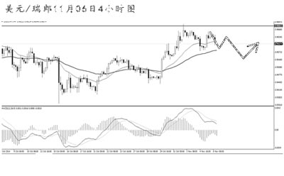 美元兌瑞郎沖高后保持震蕩節(jié)奏。日線(xiàn)圖均線(xiàn)系統(tǒng)多頭排列,前方高點(diǎn)阻力0.9680并沒(méi)有被有效升破。從4小時(shí)圖上看,空頭動(dòng)能已有所展現(xiàn),首先關(guān)注0.9540一線(xiàn)的道氏點(diǎn)支撐,匯價(jià)若跌破此位置,將展開(kāi)更為明顯的下跌。短線(xiàn)匯價(jià)面臨下調(diào)風(fēng)險(xiǎn),但預(yù)計(jì)后市仍將以走高為主,繼續(xù)向0.9700上方發(fā)起沖擊。