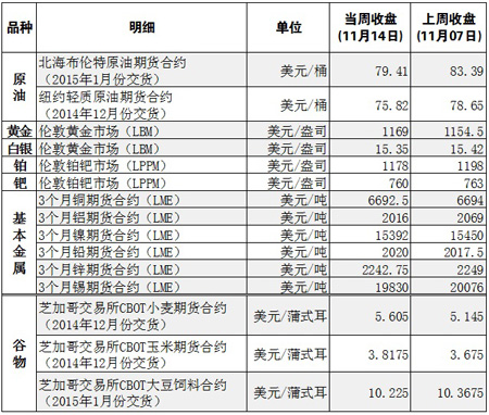 國(guó)際大宗商品期貨價(jià)格明細(xì)表[2014-11-17]