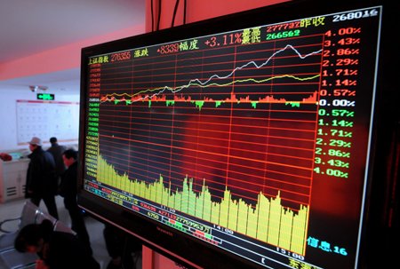 12月2日,滬深兩市低開高走,滬指在券商、銀行、保險等權重板塊帶動下暴漲83.39點,滬指創(chuàng)出2013年9月9日以來單日最大漲幅。截至收盤,滬指報2763.55點,漲83.39點,漲幅3.11%,深成指報9366.95點,漲271.19點,漲幅2.98%。其中,券商股幾乎全線漲停,方正證券、國元證券等9股漲停。 圖為,在河南洛陽一家證券營業(yè)廳內拍攝的當日滬指漲幅K線圖。