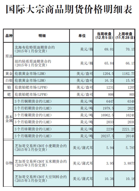 國(guó)際大宗商品期貨價(jià)格明細(xì)表[2014-12-8]