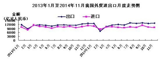 海關(guān)總署今天公布1至11月我國外貿(mào)進(jìn)出口情況。據(jù)海關(guān)統(tǒng)計,今年前11個月,我國進(jìn)出口總值23.95萬億元人民幣[1],比去年同期(下同)增長2.2%。其中,出口13萬億元,增長4.4%;進(jìn)口10.95萬億元,下降0.4%;貿(mào)易順差2.05萬億元,擴(kuò)大40.4%。