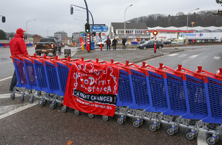 比利時各行業(yè)15日響應三大工會號召舉行全國大罷工,導致公共交通完全癱瘓,商店幾乎全部關門。包括比利時勞動聯(lián)合總會在內的比利時三大工會10月15日發(fā)布聯(lián)合公告稱,將于12月15日組織全國大罷工,抗議新的聯(lián)邦政府制定的財政緊縮等經(jīng)濟措施。 圖為當日在比利時讓布,一名男子經(jīng)過一條由超市手推車構建的路障。