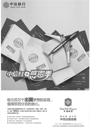 機(jī)會(huì)總是垂青有準(zhǔn)備的人,中信銀行用出國(guó)金融領(lǐng)域具有的資深優(yōu)勢(shì),才贏得了眾多友誼之邦的信賴。無(wú)論走到五湖四海,家永遠(yuǎn)是最安全的港灣,中信銀行也正是憑借其專(zhuān)業(yè)、體貼、全面的“管家式”服務(wù)贏得出國(guó)人士的青睞,讓在外的游子感受到來(lái)自“家”的溫暖。