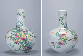 清乾隆 御窯洋彩蟠桃九熟天球尊 成交價:RMB 14,950,000 |