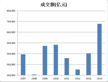 CRIC研究中心數(shù)據(jù)顯示,2014年樓市總體成交量較2013年下降10.36%。其中,一線城市樓市總體成交量相比2013年下降15.36%;二線城市樓市總體成交量同比下降6.99%。
