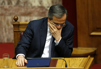 2014年12月29日,在希臘首都雅典,希臘總理薩馬拉斯出席最后一輪總統(tǒng)選舉投票。新華社/路透 |