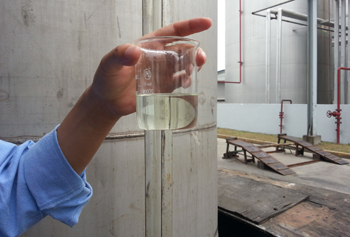 記者在位于上海市星火開發(fā)區(qū)的中器環(huán)?吹,預處理間有數(shù)個放置地溝油的大池子,油品顏色深、黏稠,走進去就能聞到濃濃的異味;而在經過預處理、加工、蒸餾等環(huán)節(jié)后的成品車間,水龍頭中放出的就是可直接用于燃料油的產品,顏色透明,幾乎沒有氣味。