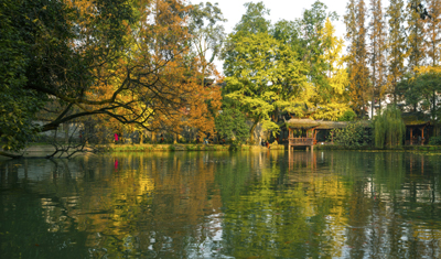 罨畫池位于城區(qū)中心,南鄰文廟,東連陸游祠,占地約38畝,素有川西名園之稱,是全國重點文物保護單位,始建于唐,成盛景于宋,亦曾稱“東亭”、“東湖”。園中散落陸游詞鐫刻數(shù)十處,池畔廊、橋、榭、軒、亭,假山疏密相間,步移景換,具有江南園林玲瓏秀雅的韻味。