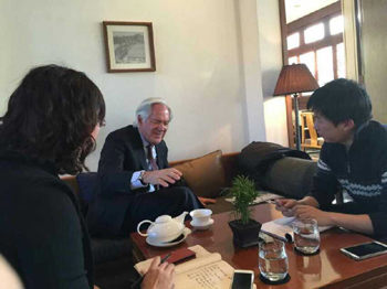 本報(bào)記者正在采訪羅蘭·貝格。康科