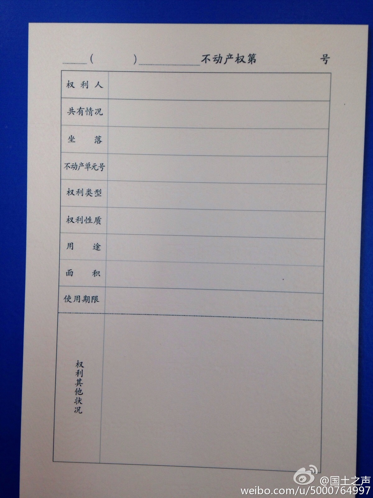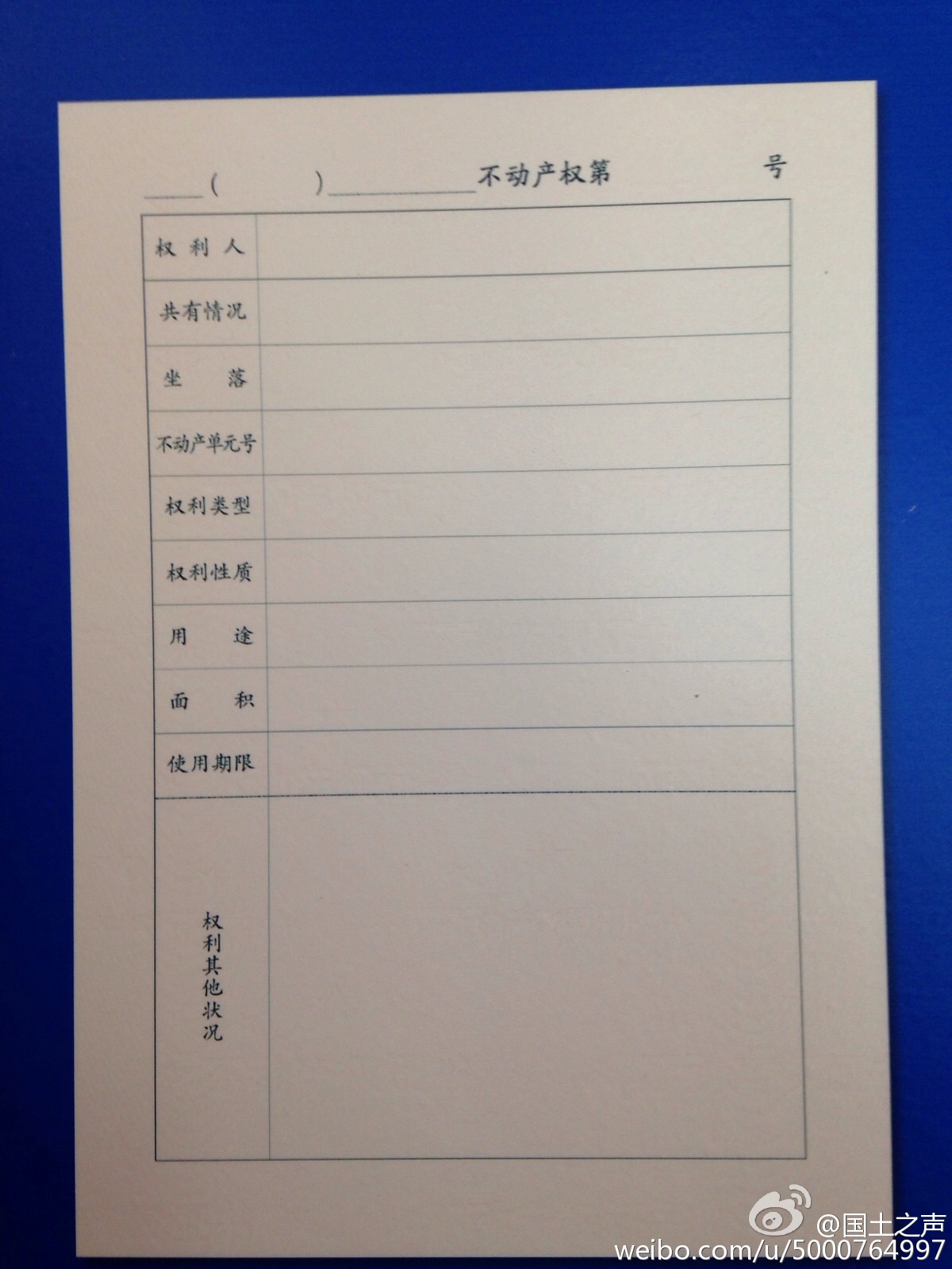 據(jù)國(guó)土資源部微博消息,不動(dòng)產(chǎn)登記3月1日正式施行,國(guó)土資源部制定的不動(dòng)產(chǎn)登記簿證樣式也將正式啟用。新的不動(dòng)產(chǎn)登記簿證是什么樣子?今天上午,國(guó)土資源部公布了《不動(dòng)產(chǎn)權(quán)證書》、《不動(dòng)產(chǎn)登記證明》的樣本。