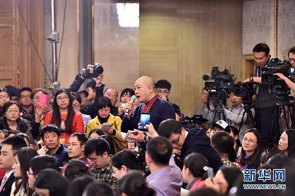 3月2日,全國(guó)政協(xié)十二屆三次會(huì)議新聞發(fā)布會(huì)在北京人民大會(huì)堂舉行,大會(huì)發(fā)言人呂新華介紹會(huì)議有關(guān)情況并回答中外記者提問。這是記者在發(fā)布會(huì)上提問。