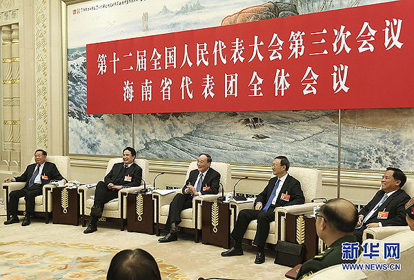 3月8日,中共中央政治局常委、中央紀委書記王岐山參加十二屆全國人大三次會議海南代表團的審議。 新華社記者 龐興雷 攝