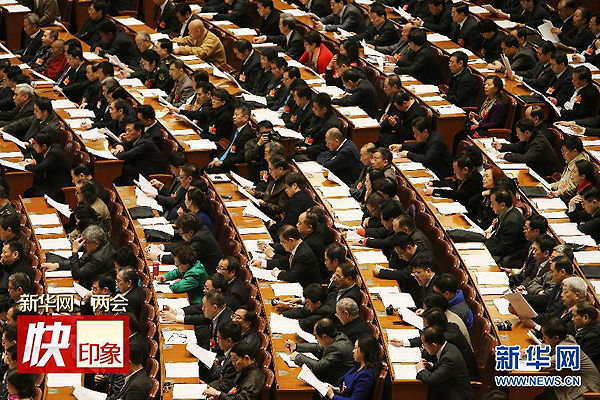 3月10日,全國政協(xié)十二屆三次會議在北京人民大會堂舉行第三次全體會議。新華社記者 呂迅 攝
