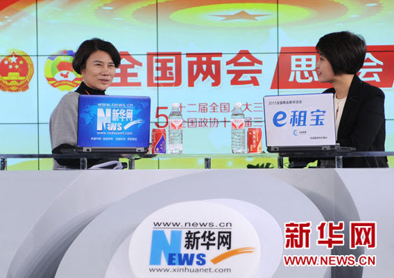 2015年3月9日,全國(guó)人大代表、格力集團(tuán)董事長(zhǎng)董明珠做客新華訪談2015全國(guó)兩會(huì)特別節(jié)目,談“讓創(chuàng)新成為企業(yè)發(fā)展新常態(tài)”。圖為訪談進(jìn)行中。