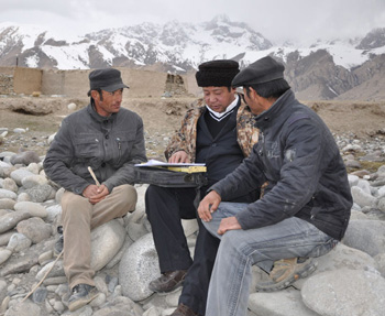 | 新疆塔縣支行信貸人員為農(nóng)牧民講解農(nóng)戶貸款 |