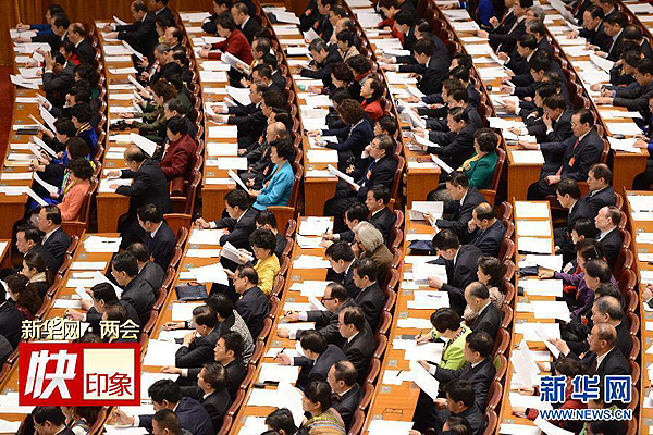 3月12日,十二屆全國人大三次會議在北京人民大會堂舉行第三次全體會議。新華社記者 高潔 攝